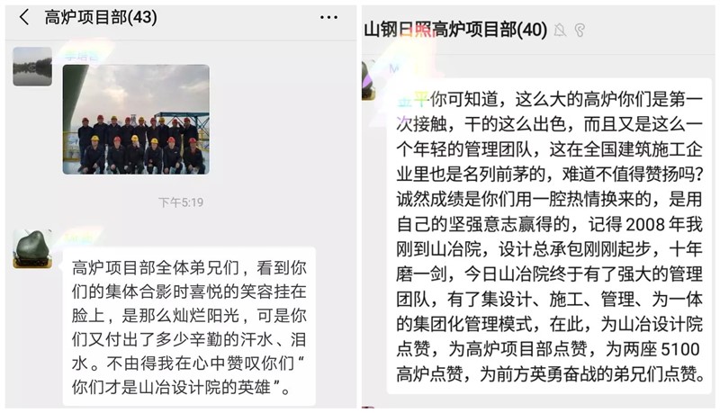 山鋼集團日照精品基地兩座5100m3高爐均是山冶設計總包建設,是目前國內(nèi)外采用“EPC”總承包模式建成的最大容積的高爐。該高爐工程完成過程中形成了多項先進實用、成熟可靠、綠色低碳、清潔環(huán)保的創(chuàng)新型技術。也是我國已經(jīng)投產(chǎn)的5000立方米以上特大型高爐中,土地利用最優(yōu)、國產(chǎn)化率最高、建造速度最快、達產(chǎn)達標時間最短、排放指標最環(huán)保的高爐。