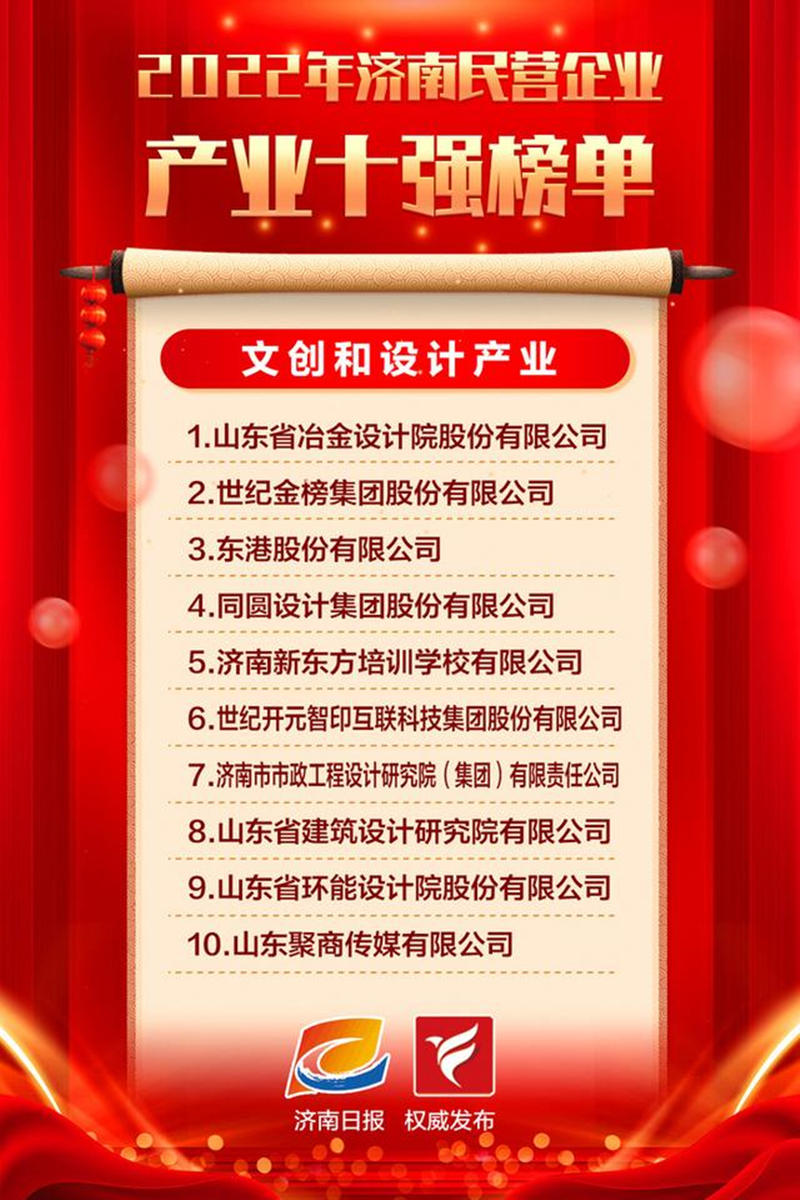 濟南民營企業百強首次發榜 山冶設計榜上有名