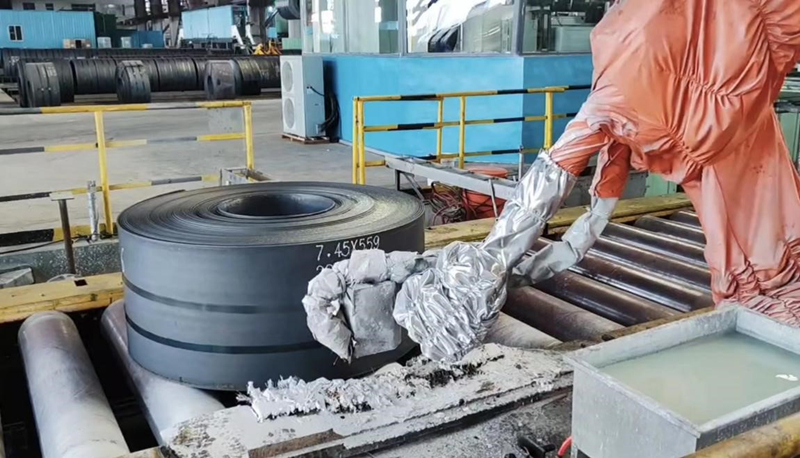2022年夏天,在天津榮程聯(lián)合鋼鐵集團(tuán)有限公司一軋車間運(yùn)輸鏈旁,多出了兩個瘦高橙黃色身影,它們絲毫不畏懼近在咫尺的高溫鋼卷,夜以繼日的舉起噴槍將產(chǎn)品信息噴寫在鋼卷上。同時,在山東鋼鐵集團(tuán)日照有限公司煉鋼廠門處的平臺上,三個不知疲倦的高大銀灰色身影,日夜不停的揮動著自己強(qiáng)壯有力的臂膀,快速準(zhǔn)確的插入下方運(yùn)包車的鐵水包內(nèi),精確穩(wěn)定的測量出鐵水溫度,并降鐵水樣品完好無缺的取出。“它們”便是山東省冶金設(shè)計院股份有限公司(后稱山冶設(shè)計)自主研發(fā)的智能機(jī)器人系統(tǒng),旨在用機(jī)器人代替人實現(xiàn)繁重、重復(fù)、惡劣的崗位。