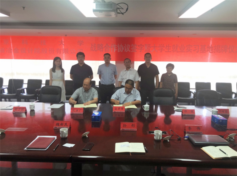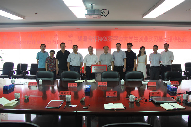 2019年7月23日,山冶設(shè)計(jì)與北京科技大學(xué)戰(zhàn)略合作框架協(xié)議簽字儀式暨北京科技大學(xué)大學(xué)生就業(yè)實(shí)習(xí)基地揭牌儀式在濟(jì)南舉行。北京科技大學(xué)土木與資源工程學(xué)院黨委書記紀(jì)洪廣,黨委副書記鄧波一行4人,公司董事長魏新民,黨委書記谷卓奇,副總經(jīng)理孫彤及相關(guān)科室人員出席了簽字儀式。